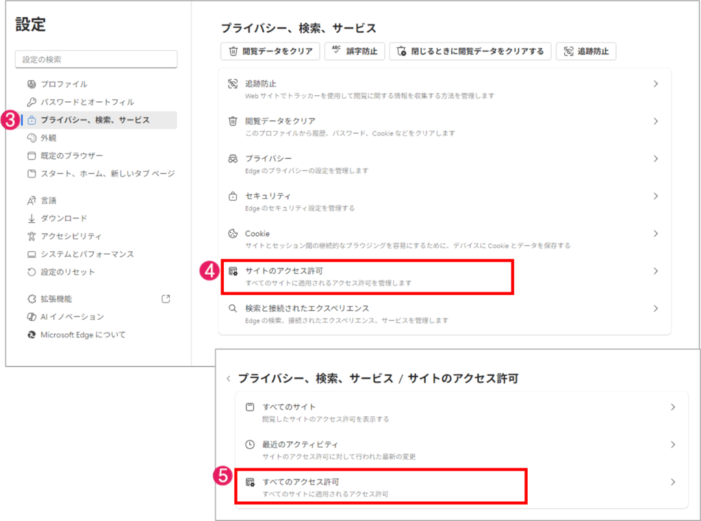 ブラウザへのサイト登録 ーedgeー