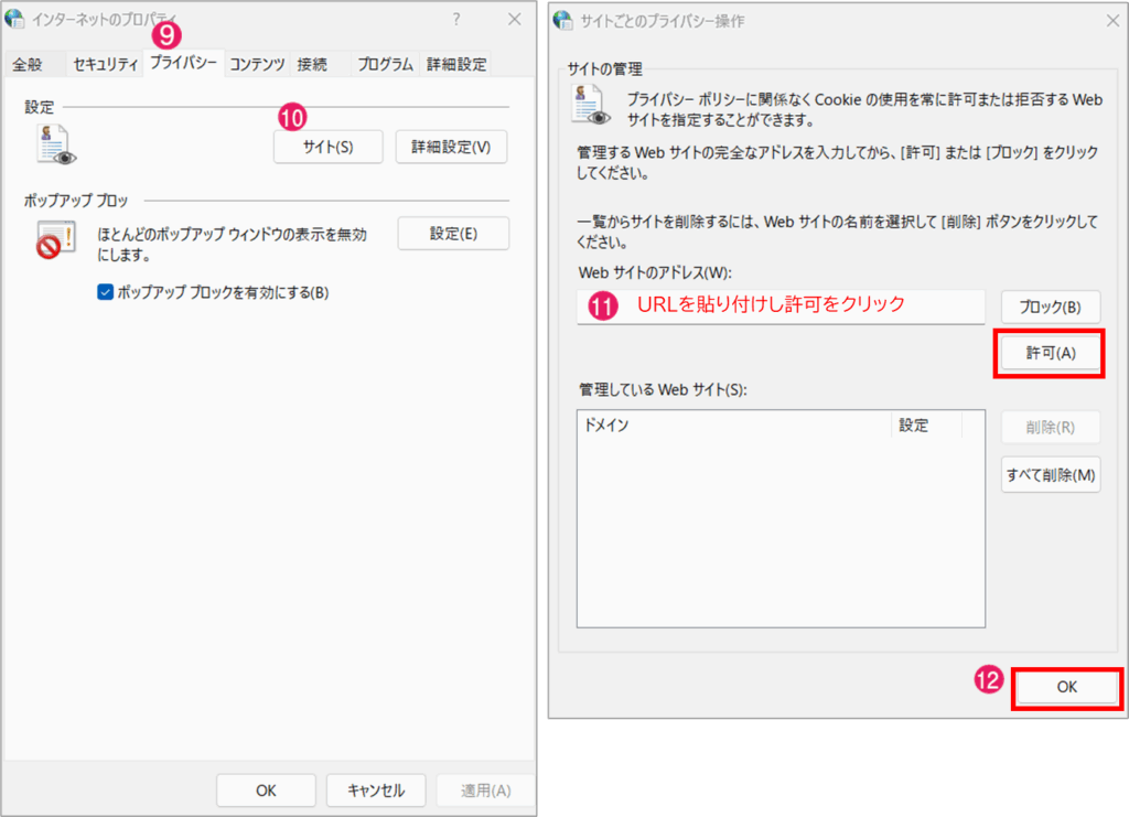 その際は以下ブラウザやインターネットオプションへサイトを登録頂くことで解消する可能性があります。
