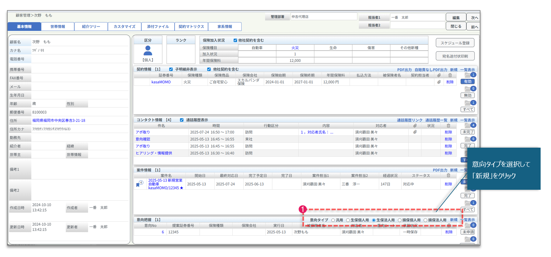 生命保険および損害保険の募集区分(個人・法人)に対応した意向把握項目を追加し、より的確な意向確認が可能となりました。