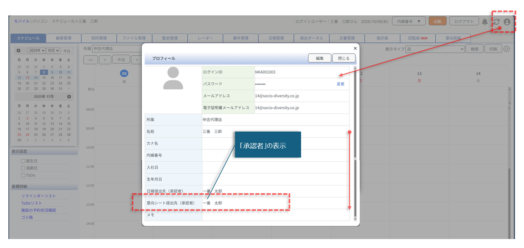 ▼ 自分にとっての意向把握”承認者”はプロフィールで確認可能
