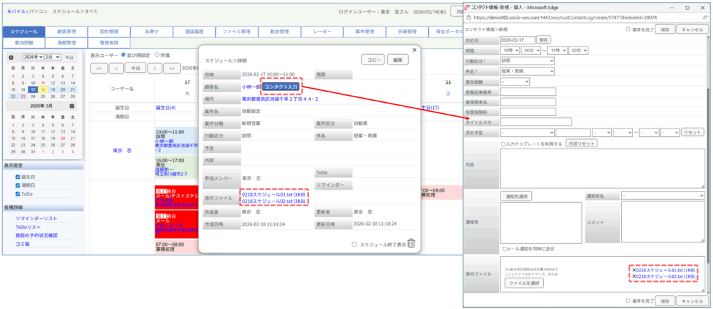 顧客情報を紐づけしたスケジュールからの「コンタクト入力」を行う際、スケジュールの添付ファイルをコンタクト入力画面へコピー添付されるように改良いたしました。
